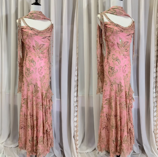 Gray Pink Retro Mermaid V-neck Chiffon Beaded Long Prom Dress Sweet Applique Birthday Dress ED01705