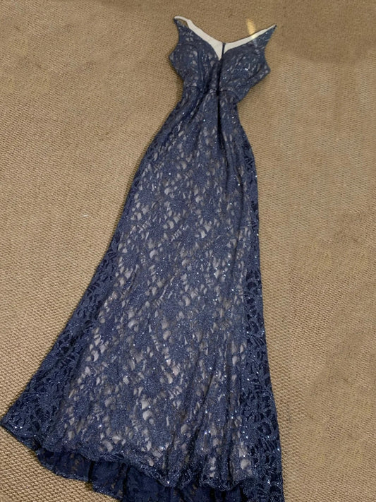 Affordable dresses under $160||Elegant Gradient Navy Blue Sheath Spaghetti Straps Sparkling Chiffon Prom Dress for Party ED01883