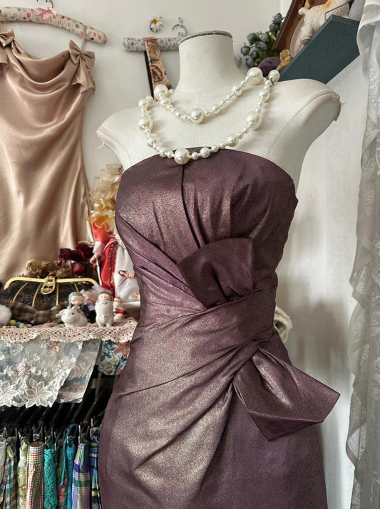 Purple Printed A-Line Temperament Sweetheart Neck Backless Party Dress Strapless Birthday DressED01855