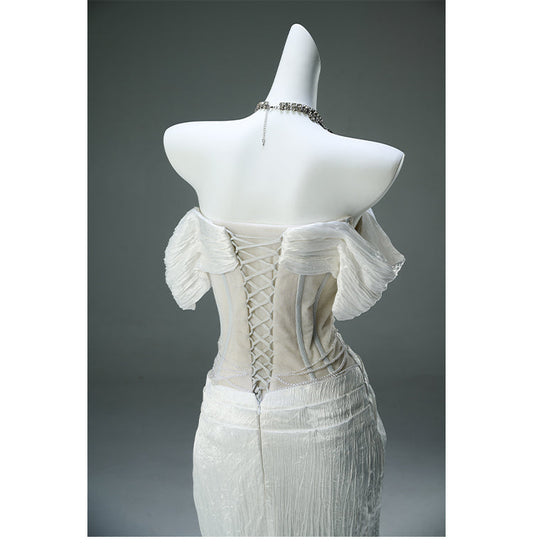 Glam White Taffeta Off-the-shoulder Mermaid Evening Dress Beaded Long Prom Dresses ED02058