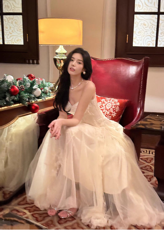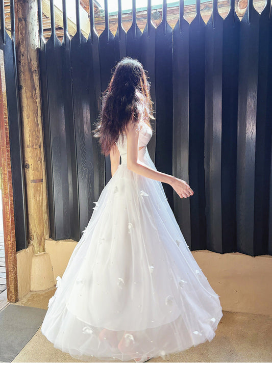 Fairytale Pearl Butterfly Tulle White French A-Line Spaghetti Straps Birthday Dresses ED02242