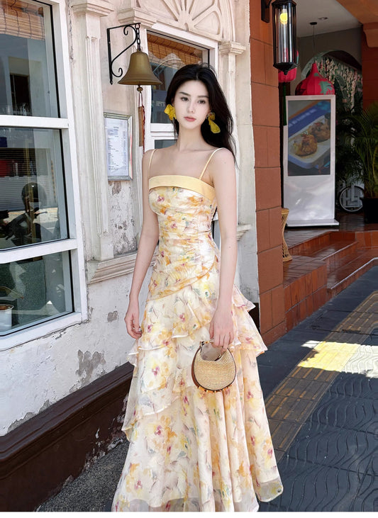 Sweet French Ruffle Print Spaghetti Strap Dress Fashion Mermaid Party Dress ED02250