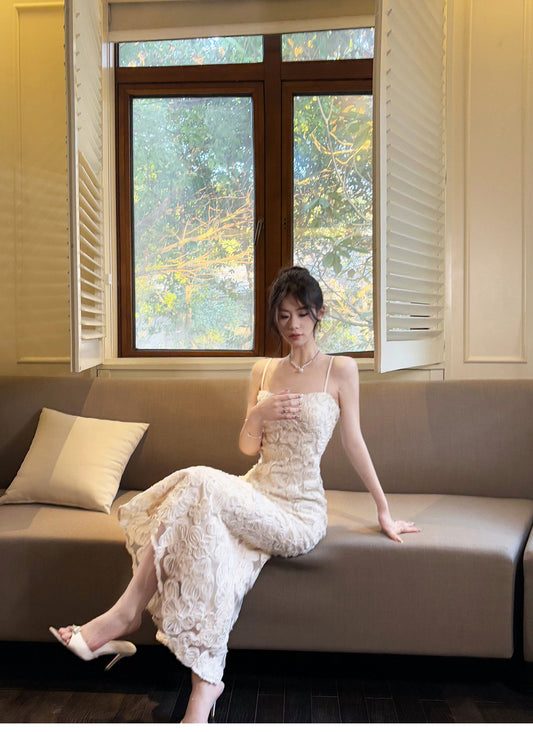 White Elegant 3D Flower Embroidery Spaghetti Straps Mermaid Birthday Party Dress ED02255