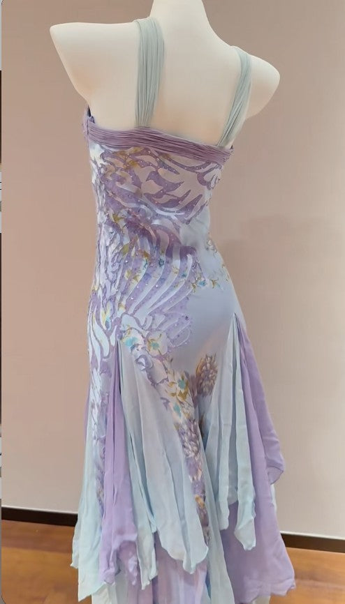 Vintage Purple Mermaid Spaghetti Straps Chiffon Beaded Prom Dresses Stunning Formal Evening Gowns ED02354