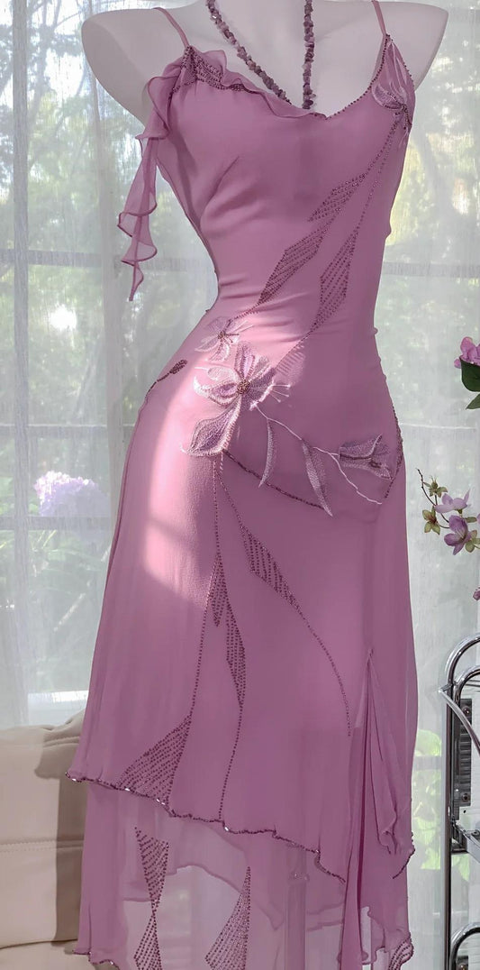 Retro Dusty Pink Spaghetti Straps Mermaid Chiffon Beading Prom Dresses Elegant Party Dress ED02363