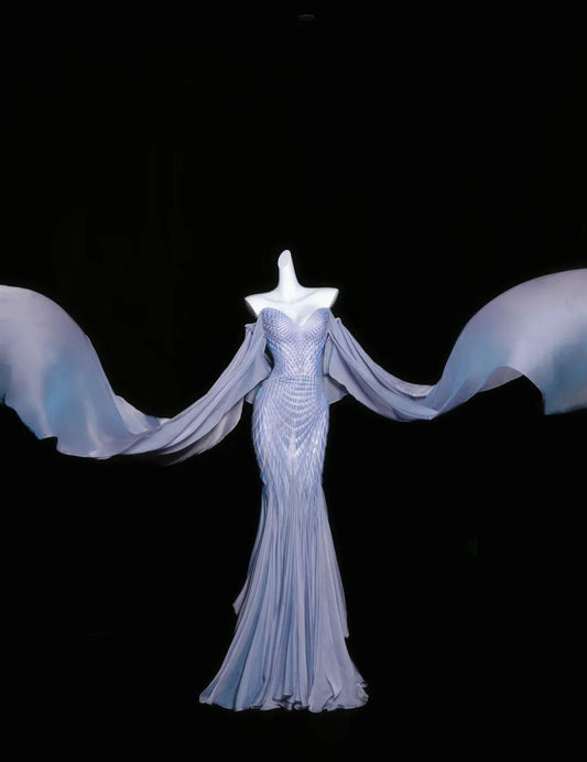 Elegant Off-shoulder Mermaid Sequined Prom Dresses With Open Back Formal Evening Gowns ED02453