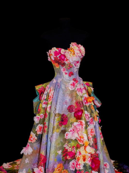 Gorgeous Jacquard Satin Strapless A-Line 3D Applique Train Wedding Dresses ED02454