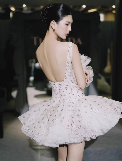 Stunning White Tulle A-Line Square Neck Polka Dot Short Prom Dresses Elegant Party Dresses ED02694