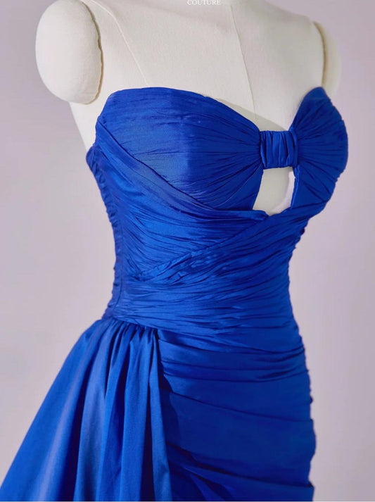 Stunning Royal Blue Sweetheart Neck Sheath Satin Long Prom Dresses Formal Evening Gowns with Slits ED02776