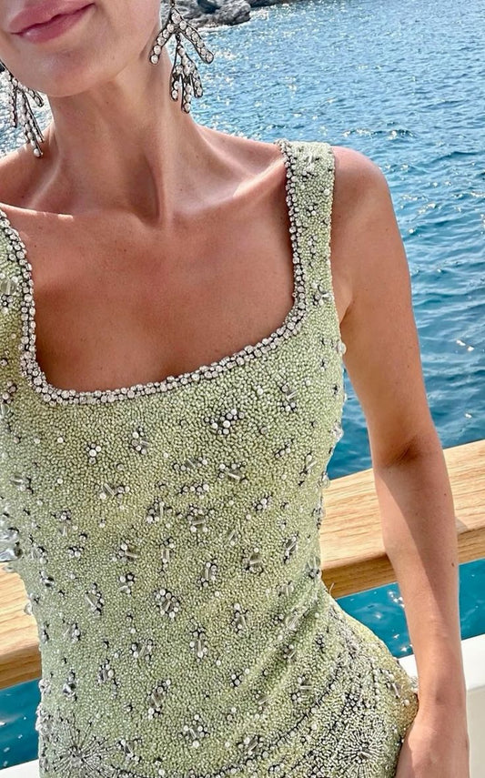 Elegant Green Square Neck Sheath Beaded Short Party Dresses Homecoming Dresses ED02869