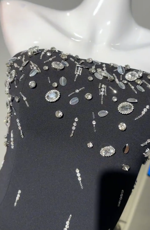Elegant Black Strapless Sheath Satin Beaded Short Party Dresses Homecoming Dresses ED02844
