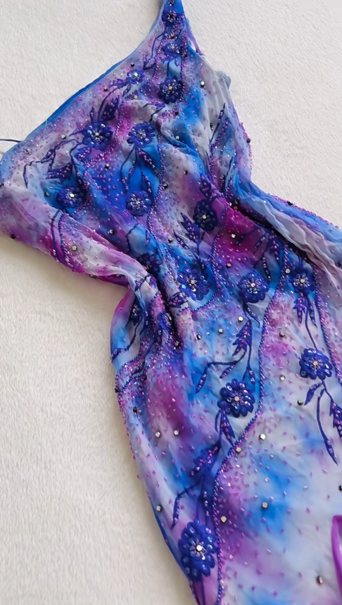 Vintage Blue Spaghetti Straps Sheath Chiffon Beading Long Prom Dresses Formal Evening Gowns ED02834