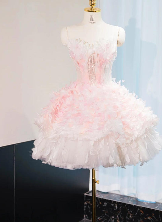 Fairytale Pink Strapless A-Line Tulle Applique Short Prom Dresses Gorgeous Homecoming Dress ED03131