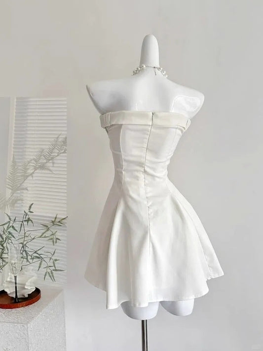 Glamour White Strapless A-Line Short Birthday Dress Elegant Party Dress ED03154