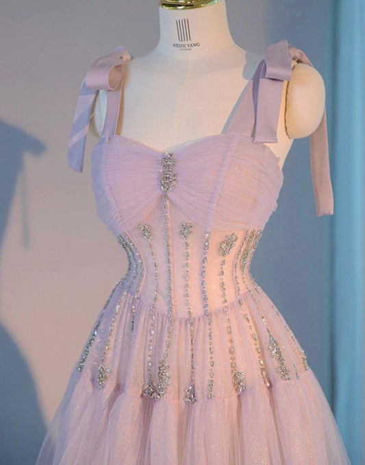 Fairytale Light Purple A-Line Straps Tulle Long Prom Dresses Sweet 16 Evening Gowns ED03166