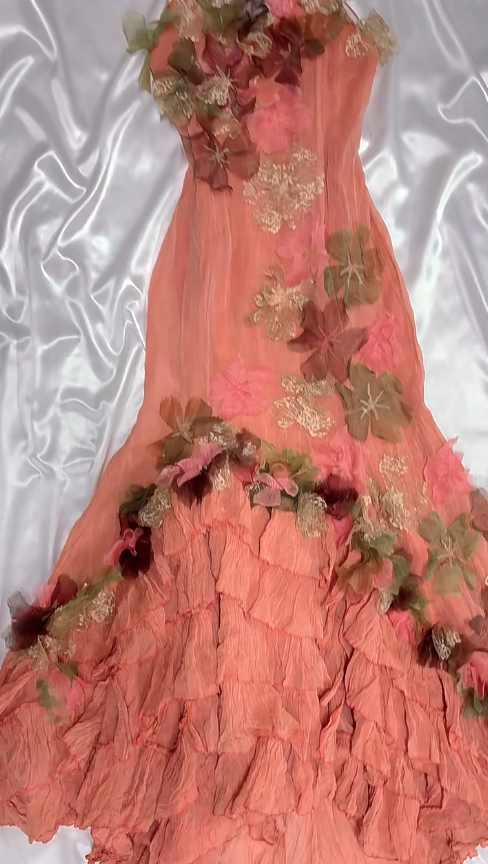 Fairytale Dark Peach Spaghetti Straps Mermaid Chiffon Long Stunning Prom Dresses Sweet 16 Evening Dress with Appliques ED03171