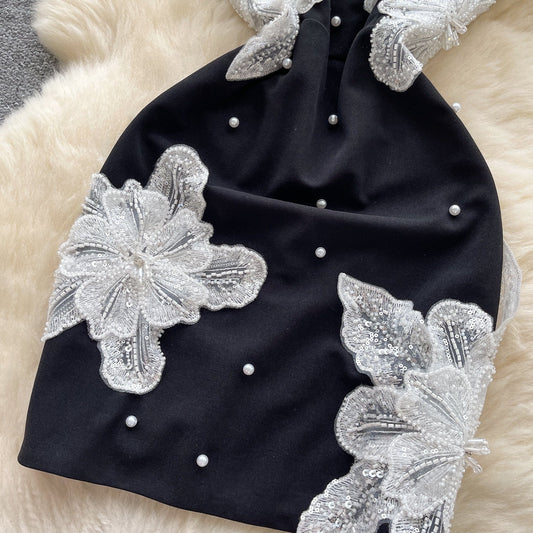 Fashionable Black Strapless Bodycon Beaded Short Outdoor Party Dress Fashion Back to School Outfit ED03393