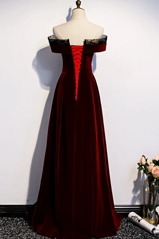 Fashionable Dark Red Off Shoulder Style Long Prom Dress, A-Line Evening Gown cg11850