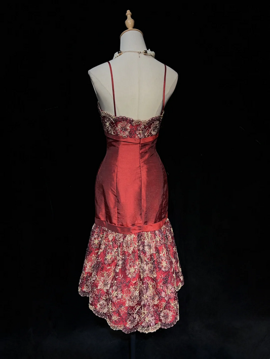 Spaghetti Straps Red Mermaid Prom Dress Elegant Evening Dress SH1044