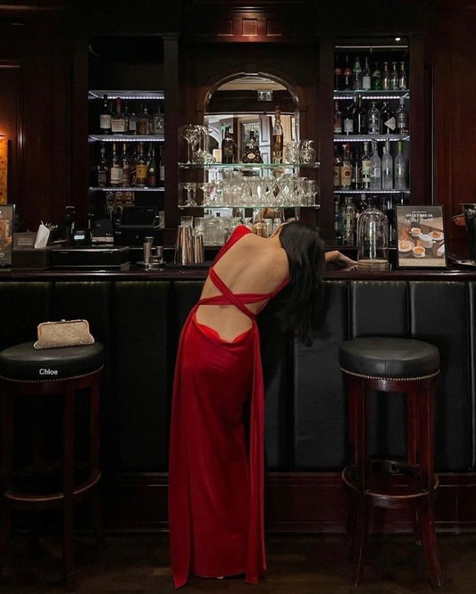 Mermaid Halter Party Dress Red Long Prom Dress P870