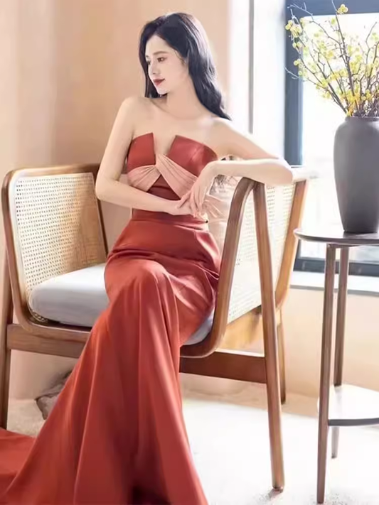 Mermaid Satin Rust Red Prom Dress Long Prom Dresses P551