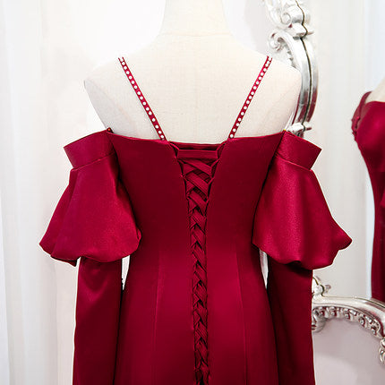 Off The Shoulder Red Short Sleeves Long Prom Dresses SH045