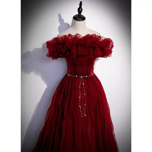 Off The Shoulder Red Tulle Prom Dresses SH150