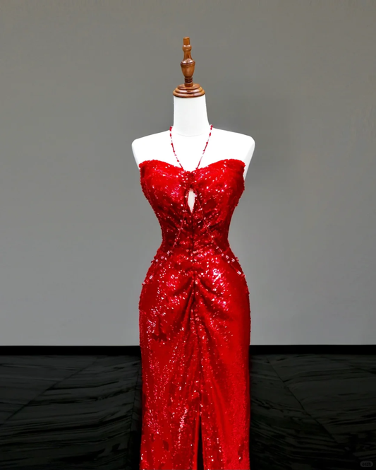 Gorgeous Sheath Sweetheart Sequin Red Slit Long Prom Dress Party Dress Graduation Dresses DP802