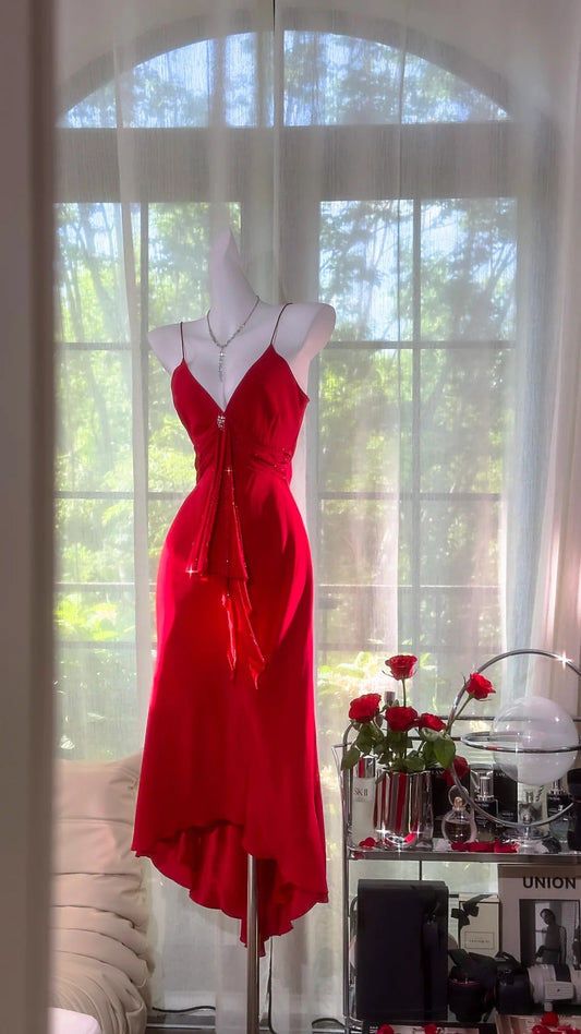 Glamour Red V-neck Sheath Chiffon Short Party Dress, Retro Prom Dresses ED03338