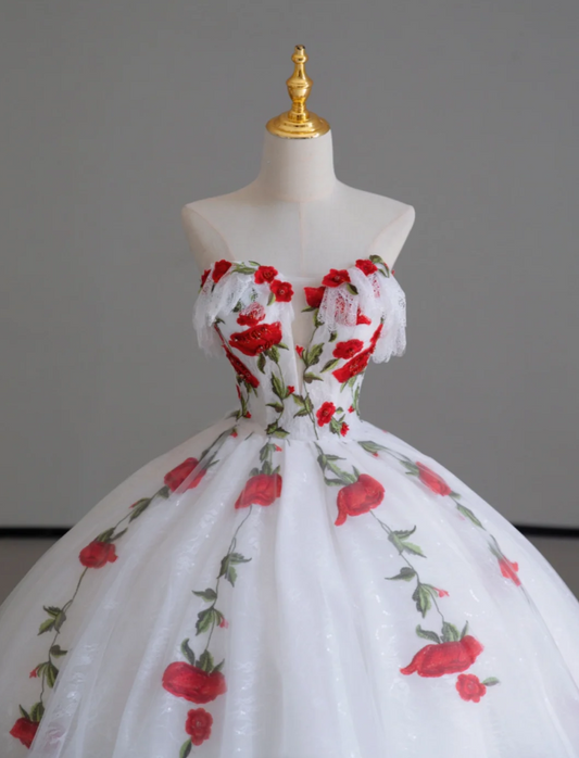 Classy Ball Gown Sweetheart Red White Tulle Prom Dresses Birthday Dresses Dance Party Dress Graduation Prom Dresses DP511