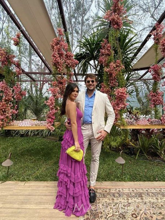 Elegant A line Long Tiered Chiffon Prom Dress 22th Birthday Outfits P2125