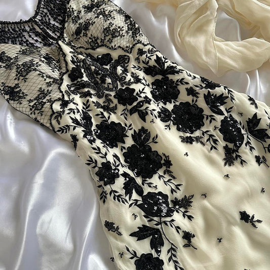 Cream black vintage fashion gorgeous exquisite beading lace shiny elegant long ball gown evening dress birthday party dress prom dress gh3648