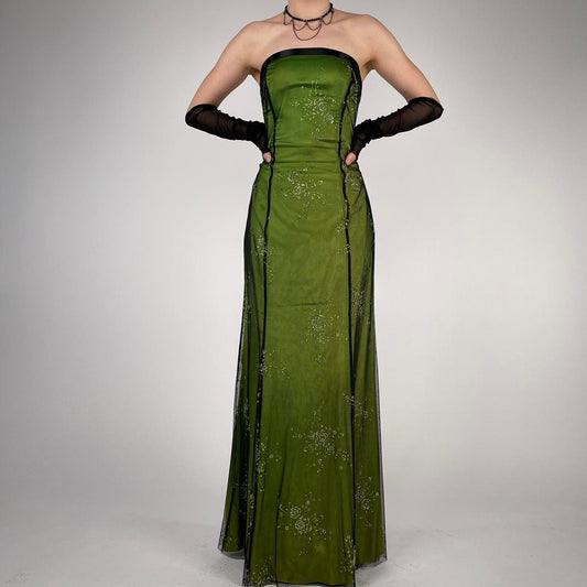 Green Vintage Fashion Elegant Exquisite Floral Beaded Swing Neck Long Chiffon Tulle Ball Gown Evening Gown Party Dress Prom Gown gh3719
