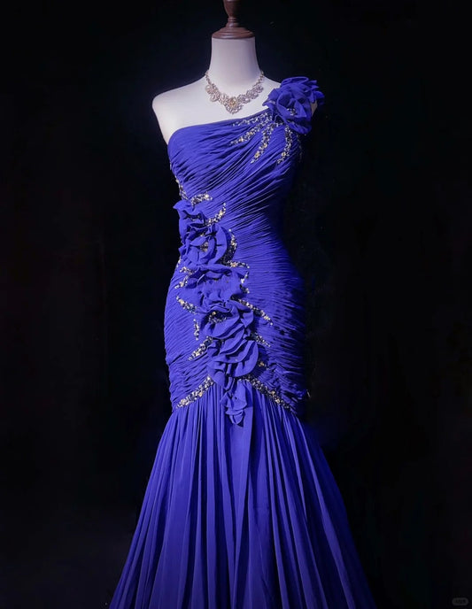 Blue gorgeous shiny elegant exquisite colorful beaded tulle long mermaid slim ball gown evening dress party dress prom dress legend of the blue sea gh3850