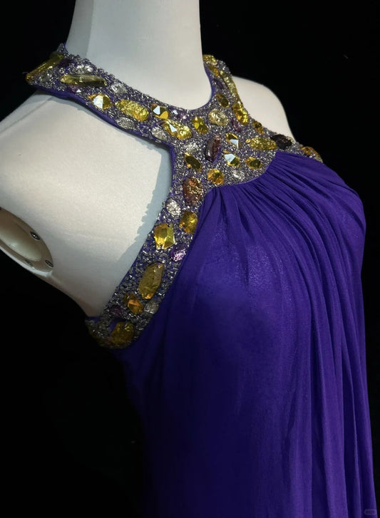 Purple Vintage Fashion Elegant Exquisite Gem Rhinestone Beading Long Floor Length Tulle Ball Gown Evening Dress Party Dress Prom Dress gh3863