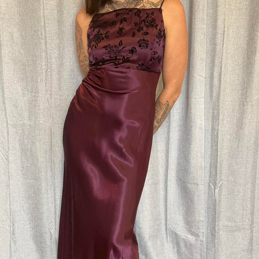 Purple Vintage Elegant Delicate Velvet Floral Spaghetti Strap Long Floor Length Formal Satin Lace Ball Gown Evening Gown Birthday Party Gown Prom Gown gh3833
