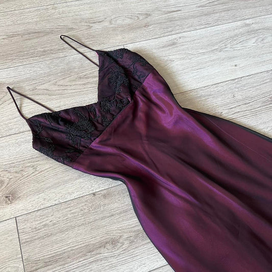 Purple Vintage Elegant Exquisite Black Embroidery Beading Spaghetti Straps Floor Length Formal Satin Lace Ball Gown Evening Dress Birthday Party Dress Prom Dress gh3834