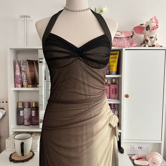 Brown and cream fashionable gradient beautiful unique glitter maxi dress vintage elegant long chiffon tulle ball gown evening dress party dress prom dress gh3879