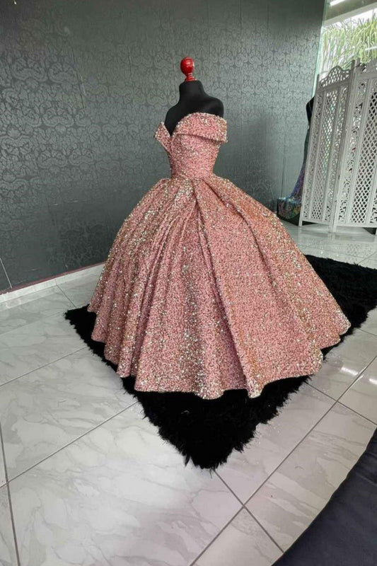 Pink Shiny Sequins Elegant Long Ball Gown Evening Dress Graduation Ball Gown gh3112