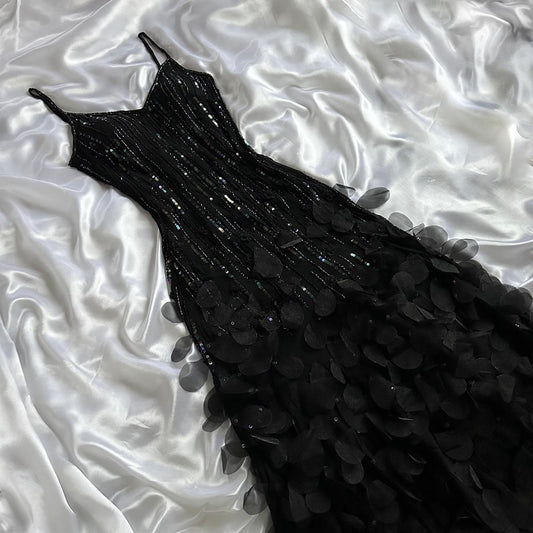 Black shiny elegant spaghetti strap sequined long ball gown prom dress evening dress party dress gh3142