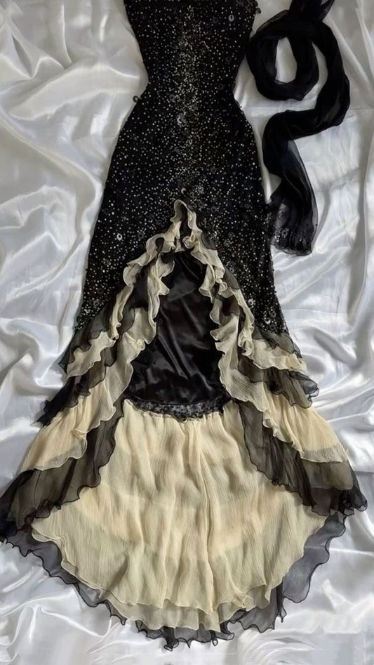 Black Sparkly Elegant Ruffled Tulle Long Sequin Ball Gown Prom Dress Evening Gown Party Dress gh3141