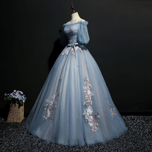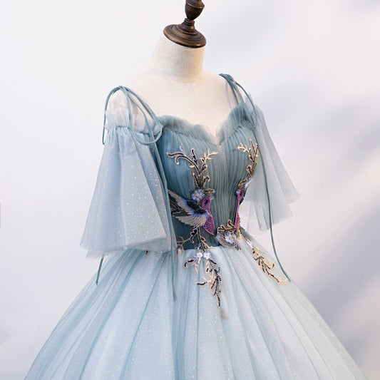 Princess Blue Straps A-Line Long Prom Gown gh1136