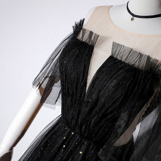 Black Shiny Elegant Fashion Tulle Long Sequin Ball Gown Evening Dress 8092