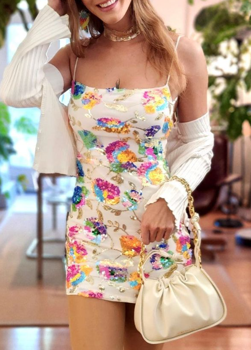 White Multi-Colors Sequins Backless Straps Sheath Homecoming Dress fg3833