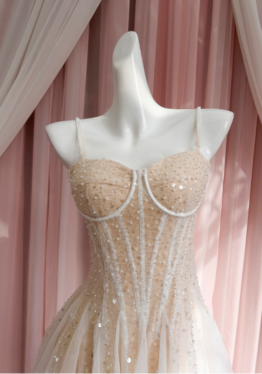 Sparkly Champagne Tulle Sequin A Line Formal Homecoming Dress Halter Birthday Dress S458