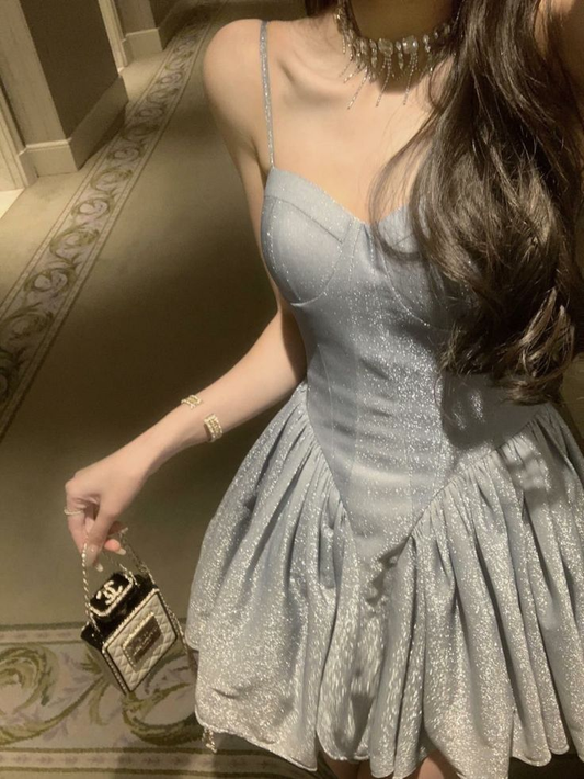 Shiny A Line Spaghetti Strap Silver Sequin Short Open Back Homecoming Dress Cocktail Dress SH3005