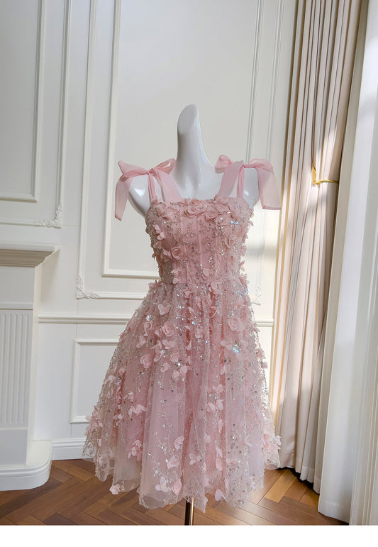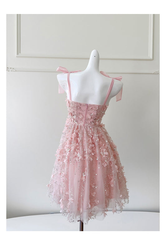 Pretty Spaghetti Straps Pink Sequin Grade Homecoming Dress Short Birthday Outfits Cocktail Dress S348