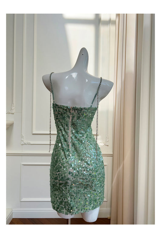 Pretty Green Strapless Sequin Cocktail Dress Sheath Short Homecoming Dress Birthday Outfits S599