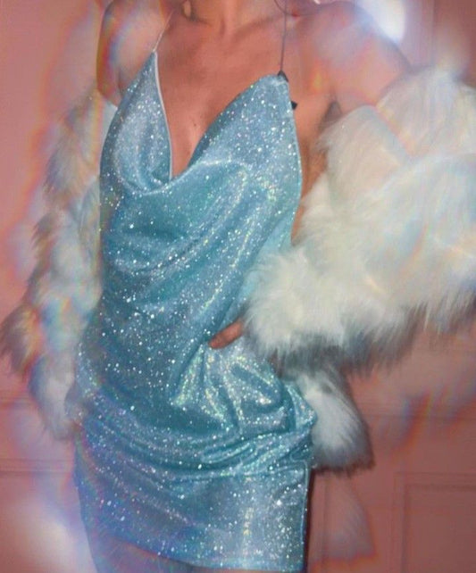 Modest Sheath Halter Sequin Blue Short Formal Homecoming Dress Middle School Short 18th Birthday Outfits Graduation Dress Cocktail Dresses DH2238