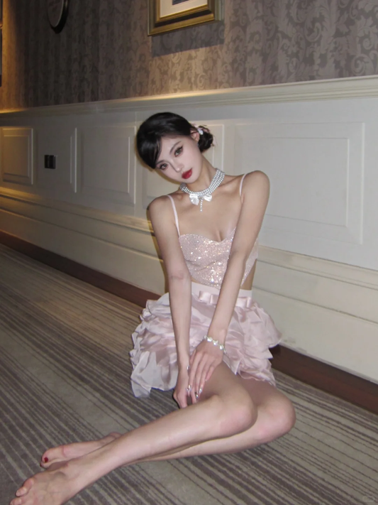 Pink Sexy Spaghetti Strap Bodycon Party Dress 18th Birthday Outfit Sparkly Sequined Tassel Homecoming Dress ED03569